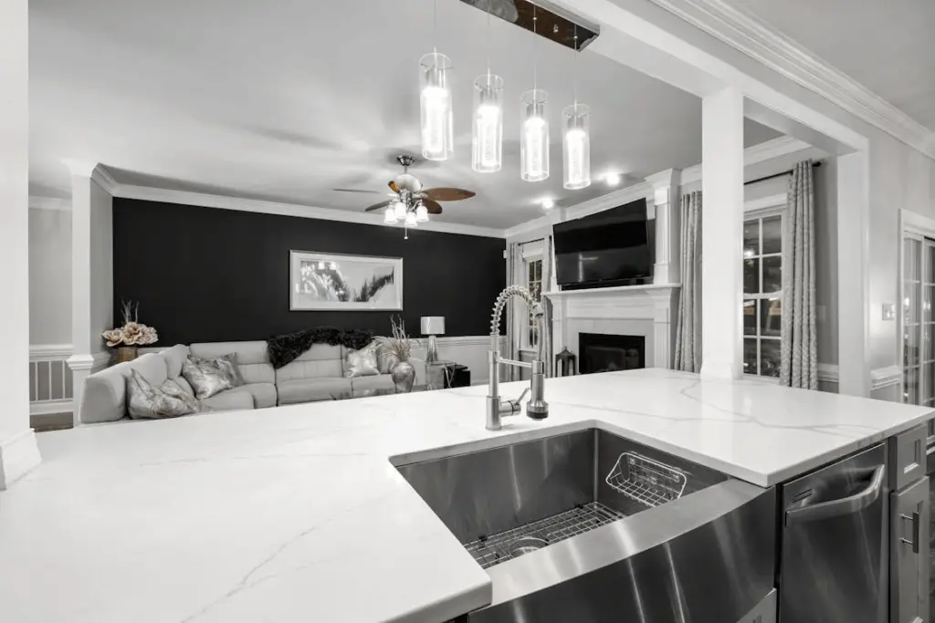 A well-planned island brings all of these together. Families often find themselves spending more time in the kitchen, so design choices matter. A sink in the island simplifies meal prep, dishwashing, and multitasking.