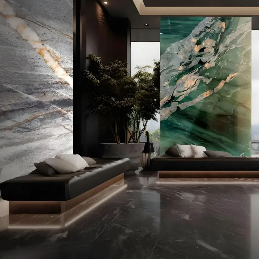 Niche Materials: Book-matched marble sets, jade mosaic sheets, anti-slip exterior pavers