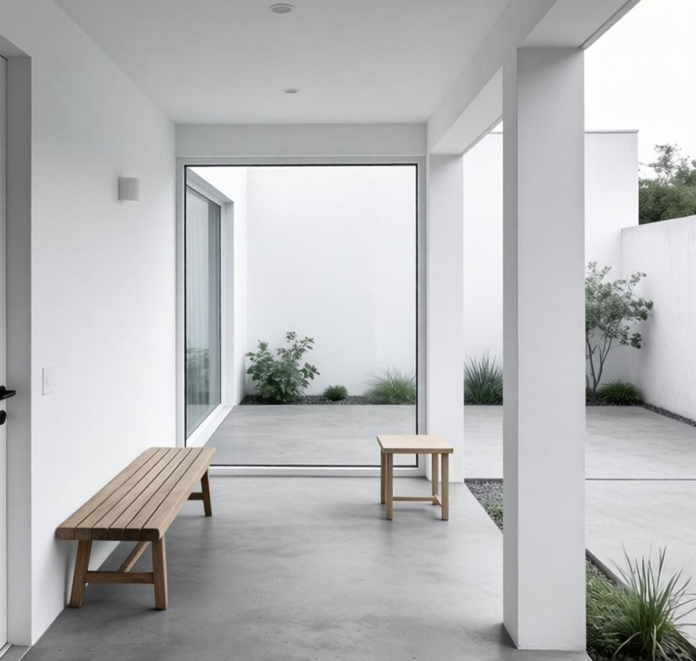 This mix enables easy passage of wheelchairs, strollers, and carts. The reduction of threshold height enhances safety and convenience in everyday life, even in normal houses.