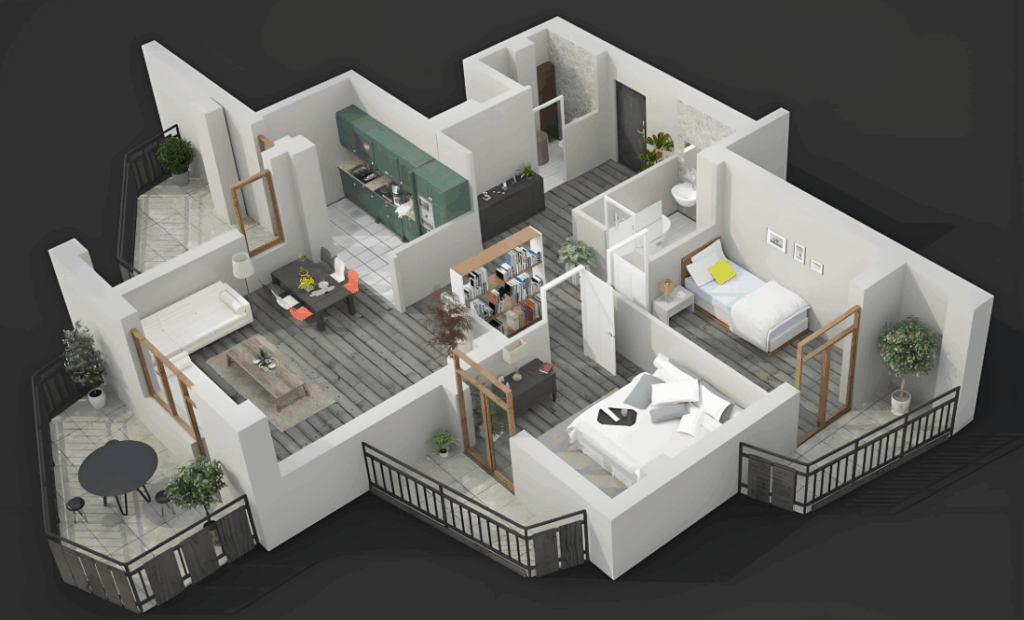 Space utilization will turn a small 2-bedroom floor plan into a big retreat. This is how intelligent design transforms small spaces into effective living spaces.